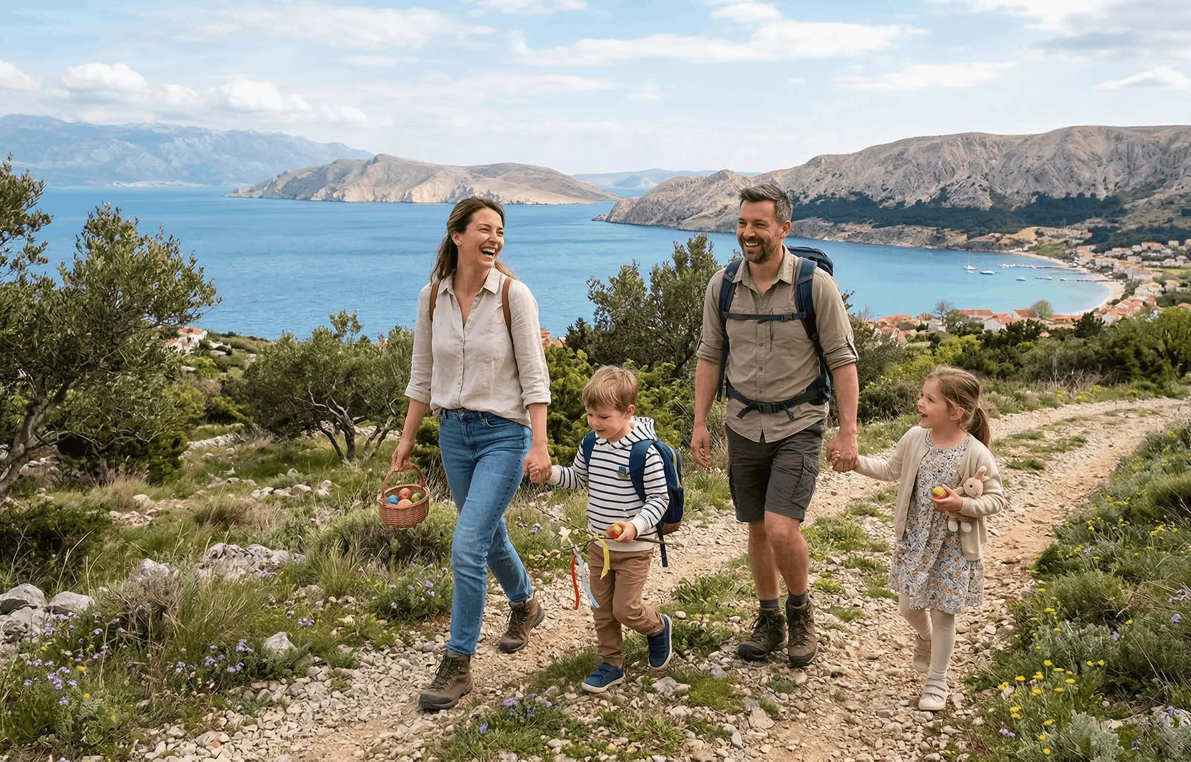 Ostern ist die perfekte Zeit für einen kurzen Frühlingsausflug aus dem Alltag. Die Tage werden länger, die Natur erwacht, und das Meer behält noch jene Ruhe, die während der Hochsaison oft verloren geht. Genau aus diesem Grund wird die Insel Krk zu einem idealen Ziel für Familien, die ein verlängertes Wochenende in der Natur verbringen möchten - bei gemütlichen Spaziergängen, beim Erkunden der Inselorte und bei gemeinsamen Stunden abseits des Stadttrubels.