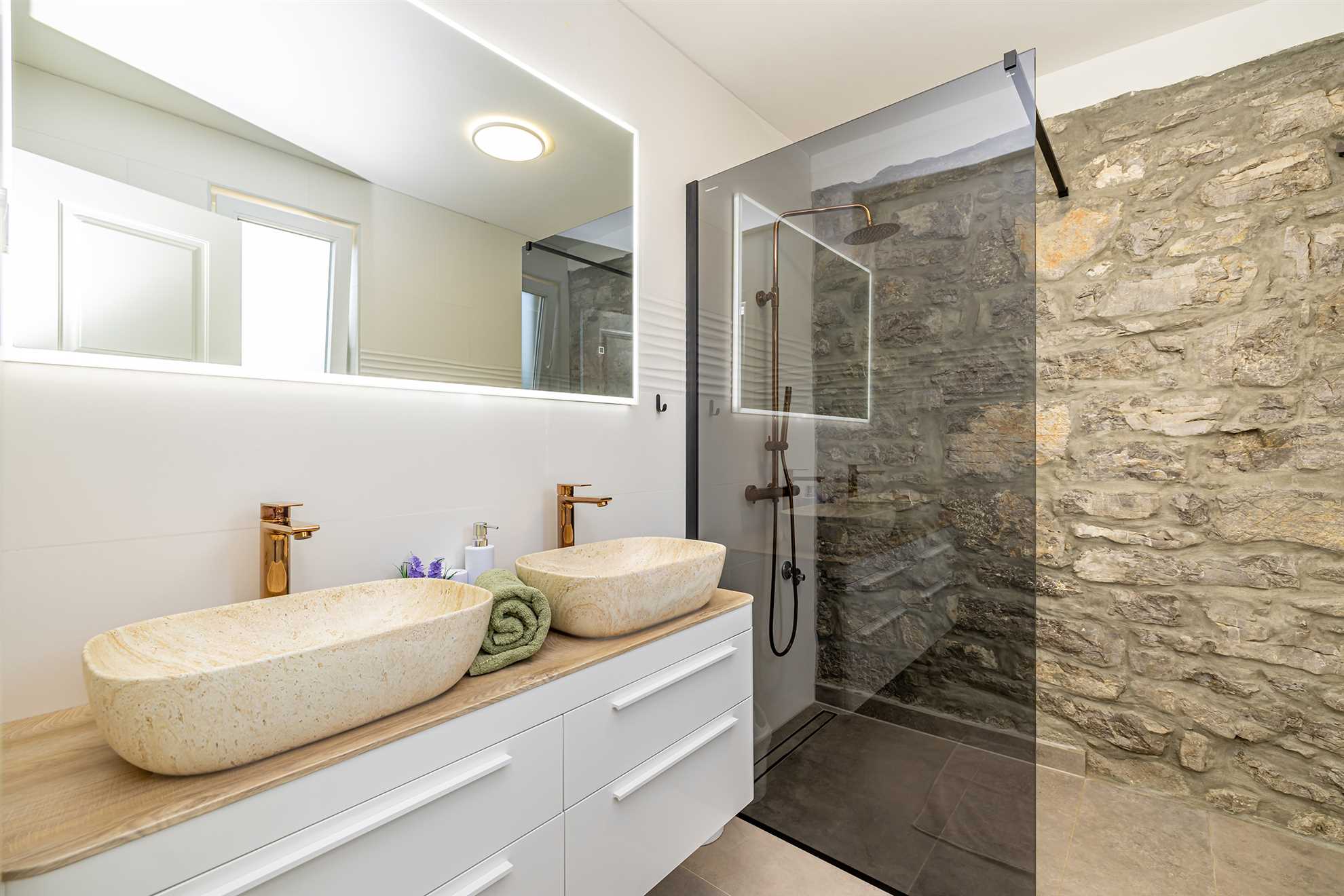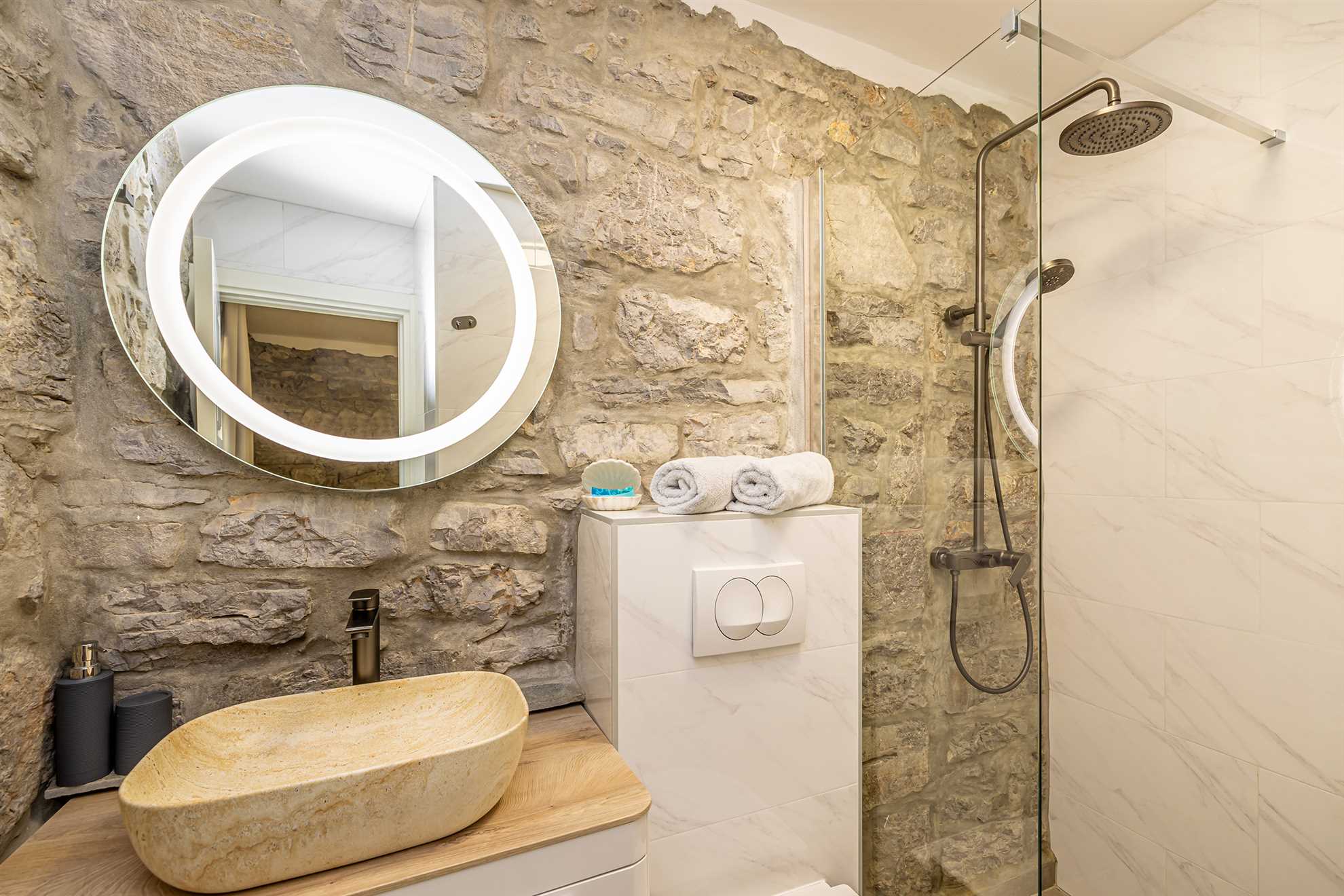 Wir wurden sehr freundlich von der Eigentümerin H. Berisha, in dem kleinen, ruhigen Dörfchen Lakmartin, begrüßt und bekamen einen kurzen Rundgang durch das geschmackvoll eingerichtete und saubere Haus, welches aus einem modernisierten alten Steinhaus mit Anbau und einem tollen Außenbereich mit Salzwasser-Pool besteht.
